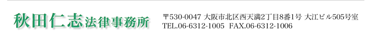 秋田仁志法律事務所 〒530-0047 大阪市北区西天満2丁目8番1号 大江ビル505号室 TEL.06-6312-1005  FAX.06-6312-1006